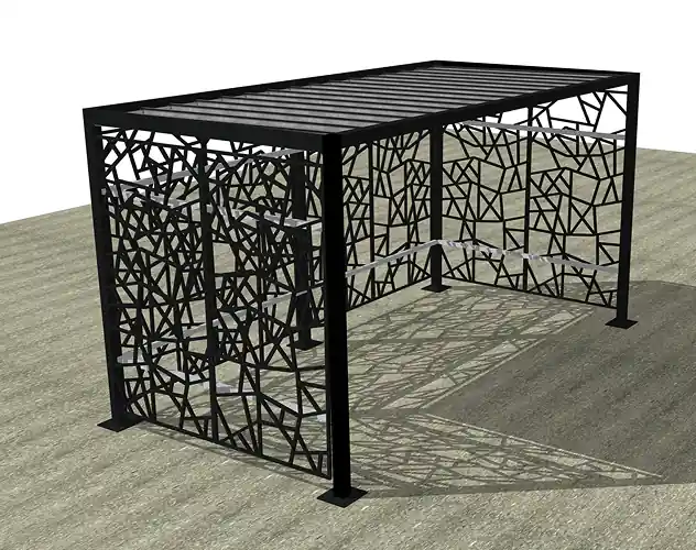 L'abri Kaléido © est la solution idéale pour transformer un espace de stationnement en une véritable signature architecturale. Contrairement aux structures standards, il allie une esthétique artistique grâce à ses parois découpées au laser et une sécurité périmétrale rigoureuse.